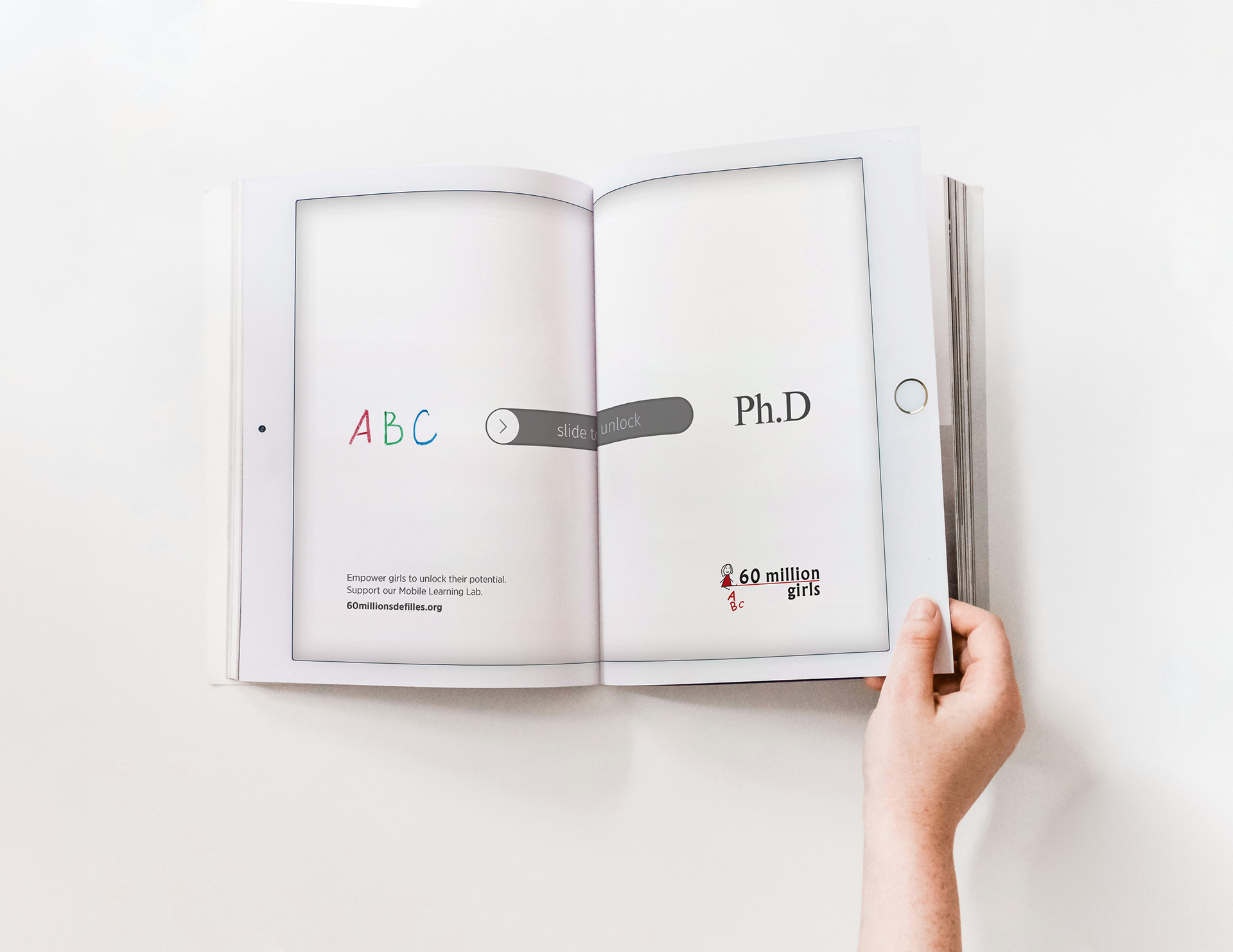 Using the tablet as the central visual device, the concept brings to life the transformative journey of education, ilustrating how access to learning can empower young girls to grow, evolve, and ultimately achieve milestones as significant as earning a PhD.